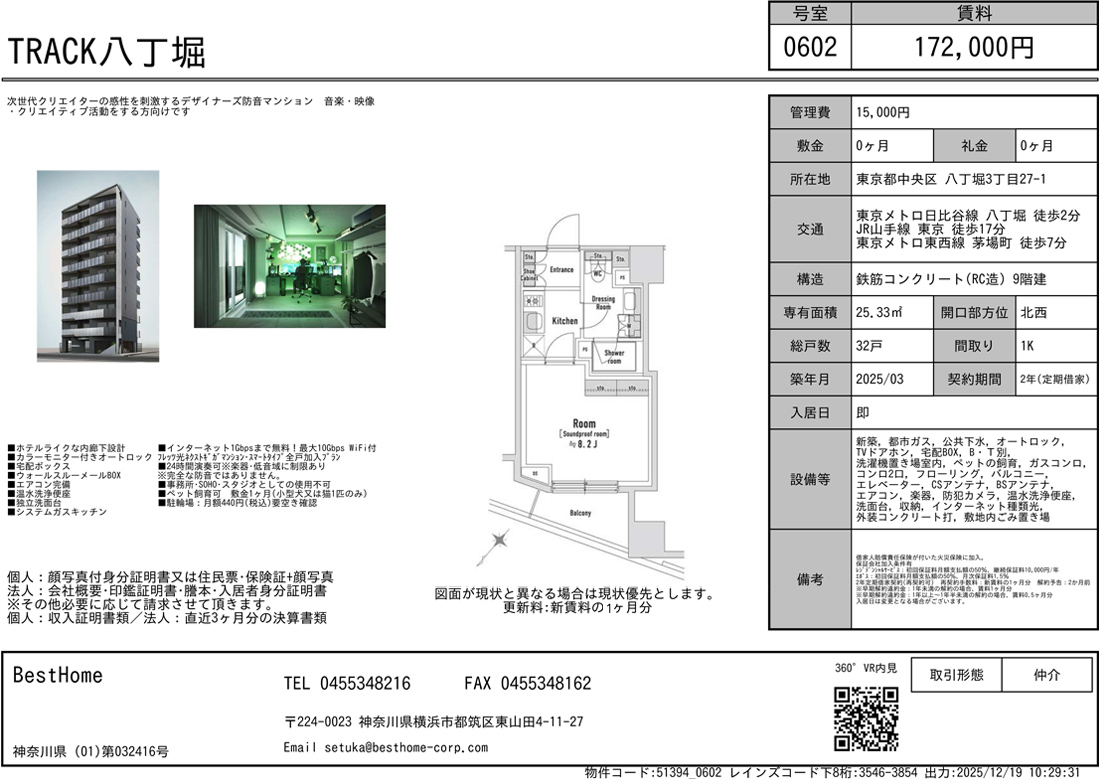 八丁堀 徒歩2分 JR山手線 東京 徒歩17分 東京メトロ東西線 茅場町 徒歩7分 |