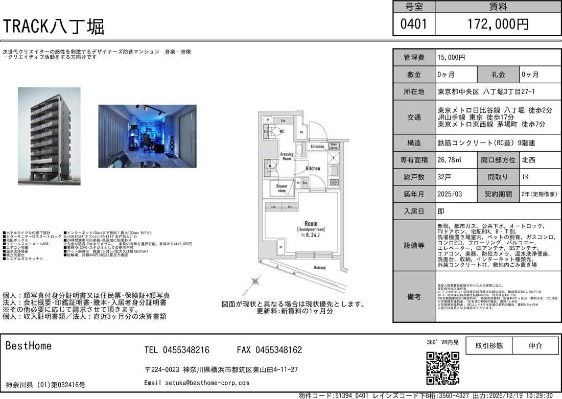 八丁堀 徒歩2分 JR山手線 東京 徒歩17分 東京メトロ東西線 茅場町 徒歩7分 |