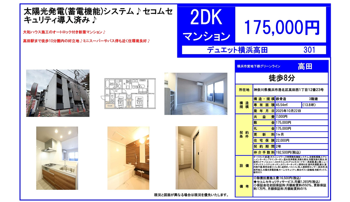 | 費用その他 | 賃料:17.5万円 |