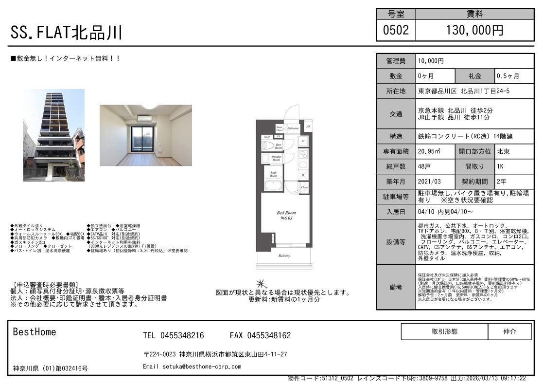 | 交通 | 京急本線 北品川 徒歩2分、JR山手線 品川 徒歩11分 |