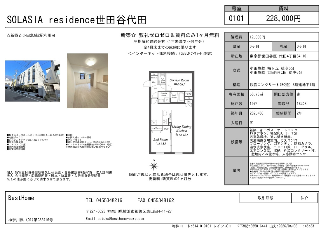入居日は変更となる場合がございます。